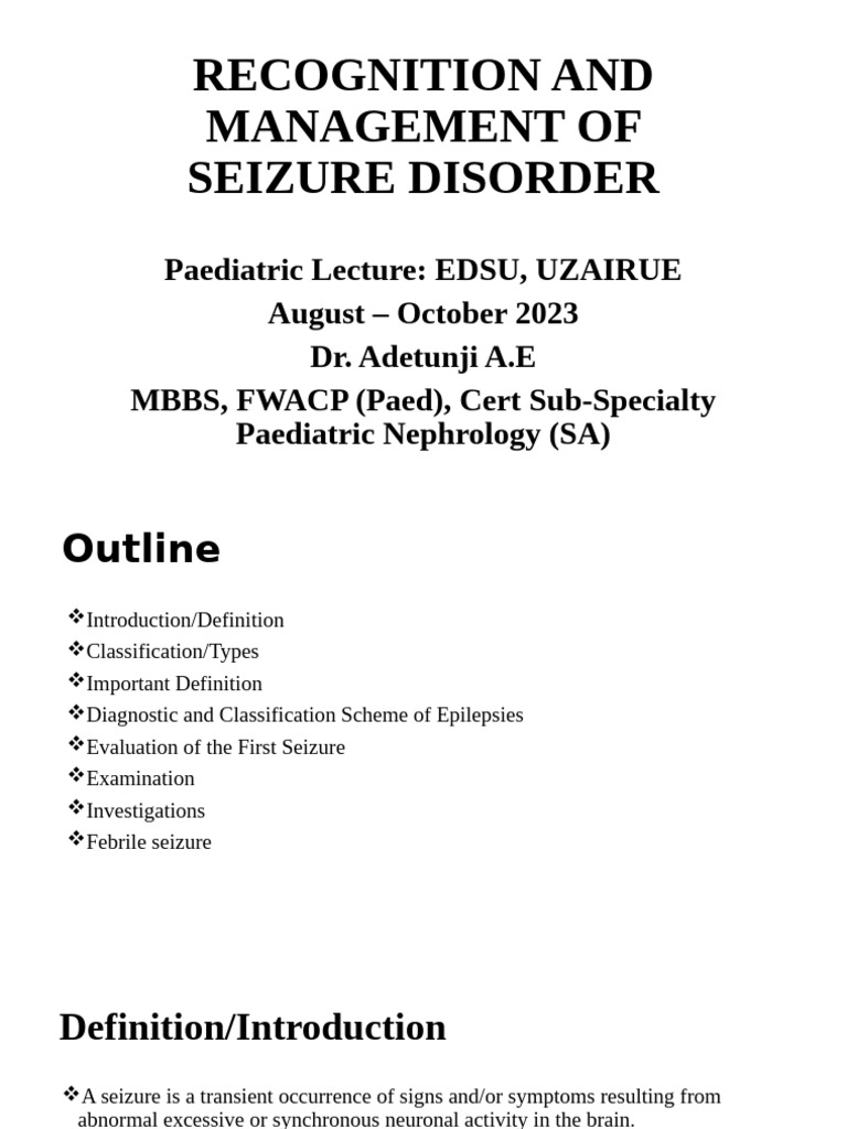 RECOGNITION AND MANAGEMENT OF SEIZURE DISORDER PDF