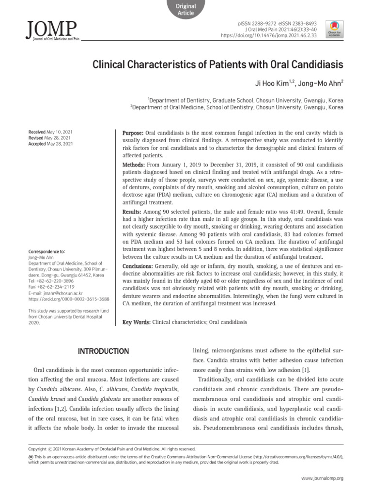 Clinical Characteristics of Patients With Oral Candidiasis PDF