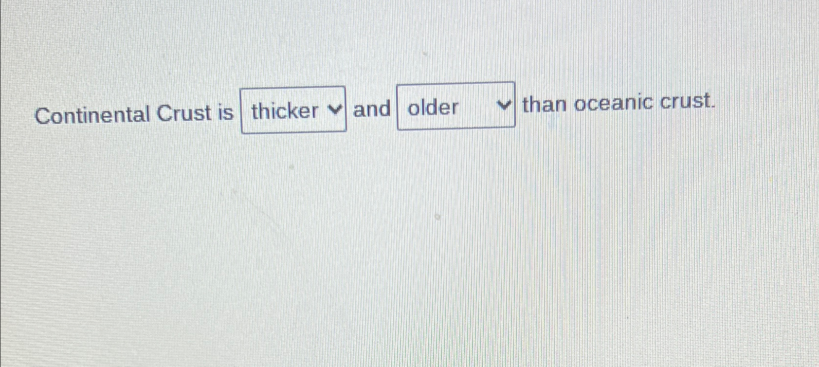 Solved Continental Crust is and than oceanic crust.