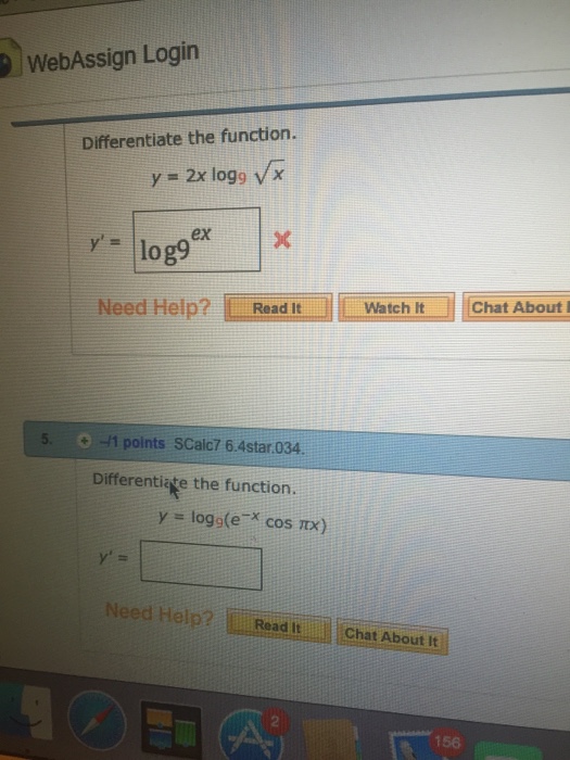 Solved Differentiate the function. y=2x log 9 root x y= log