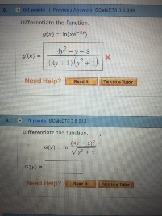 Solved Differentiate the function. g(x) = ln(xe6x) g'(x) =