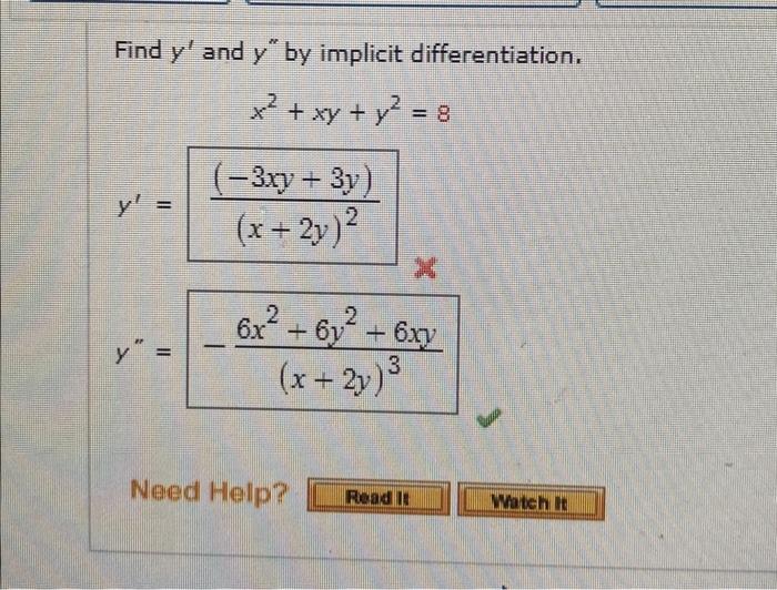 Solved Find y′ and y′′ by implicit differentiation.