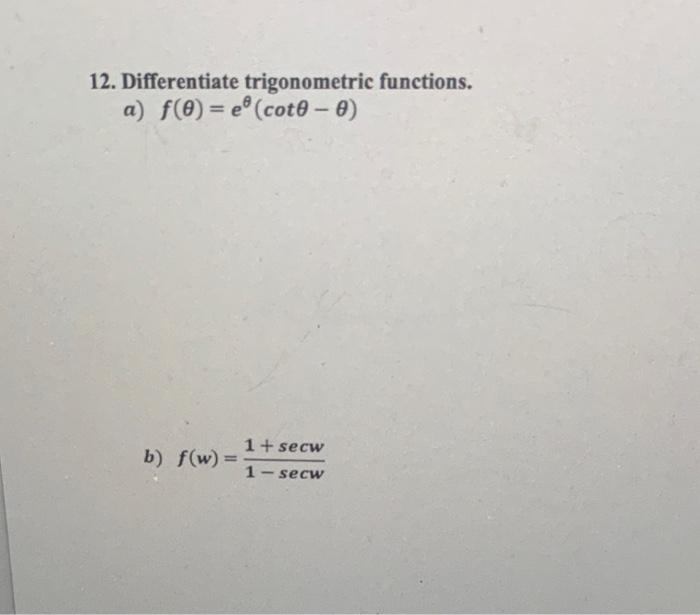 Solved 12. Differentiate trigonometric functions. a) f(0) =