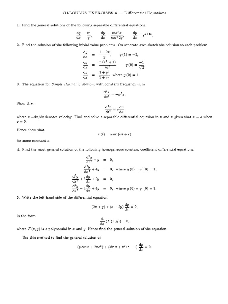 Calculus 4 PDF Differential Equations Equations