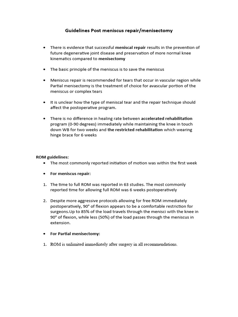 Meniscus Repair Guidelines PDF Joints Musculoskeletal System