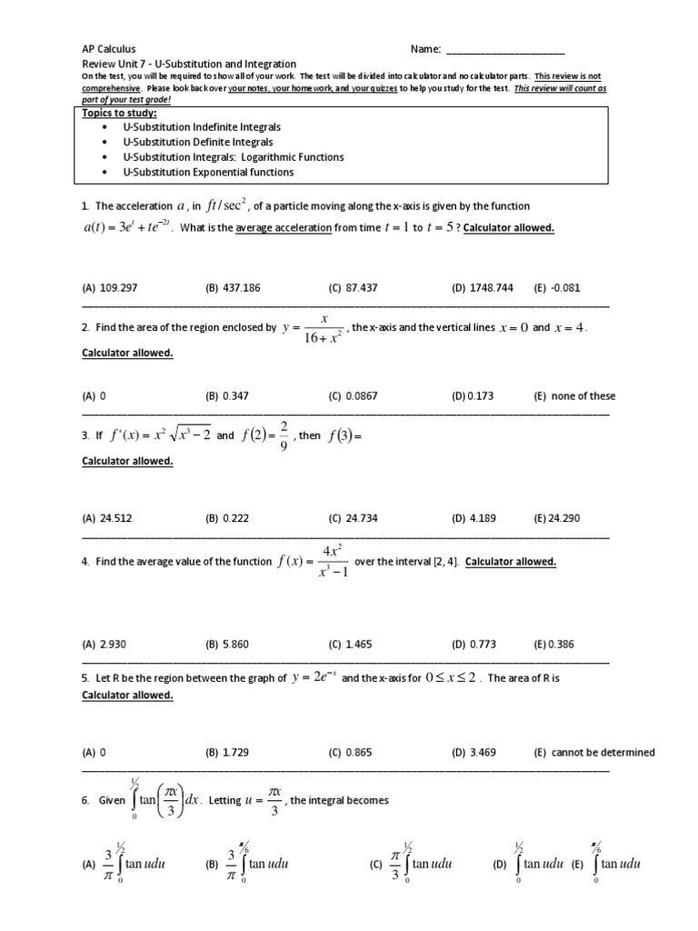 Unit 7 Review WS 2013 PDF Fahrenheit Integral